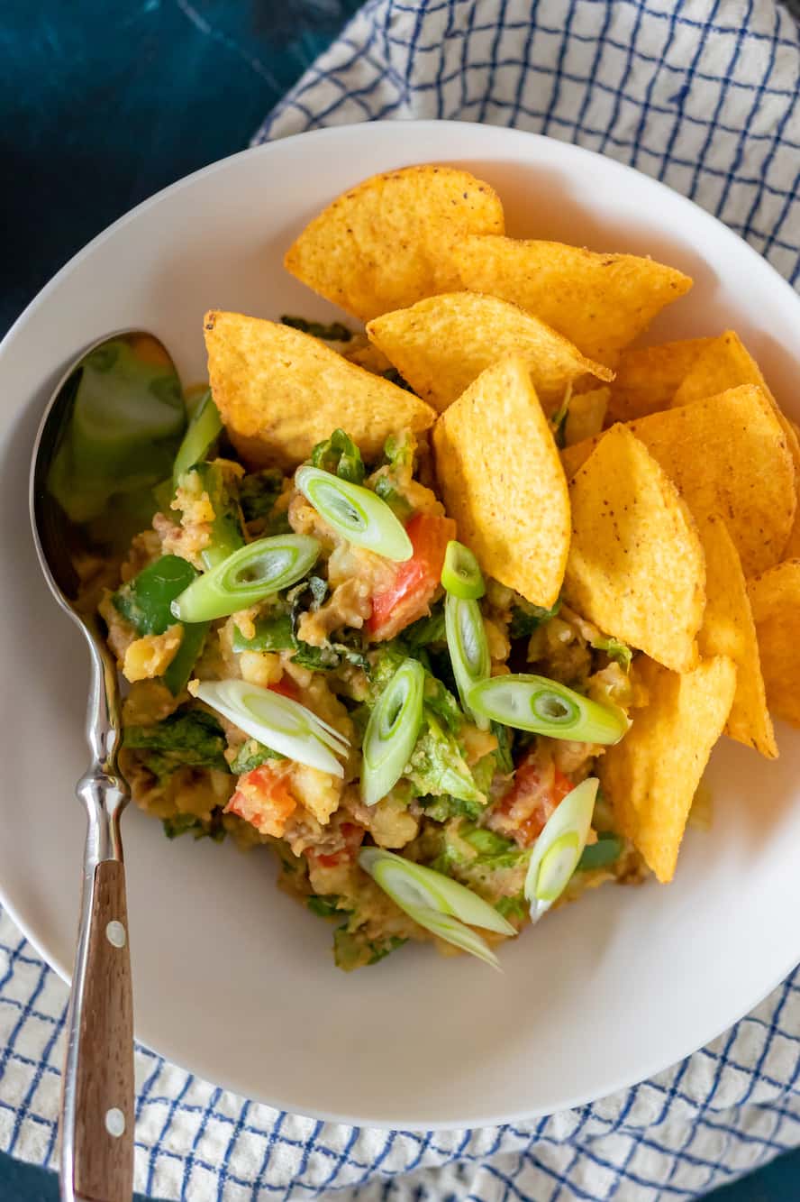 Ik hou ervan om af en toe eens gek te doen in de keuken. Door combinaties te maken die je niet zou verwachten. Zo maakte ik laatst een mix van de puur-Hollandse stamppot en de Tex Mex-keuken en zo ontstond deze Tex Mex stamppot waarin ik alle ingrediënten van taco’s verwerkte. En dat was een groot succes! De kinderen vonden het echt geweldig en de bordjes gingen schoon leeg. Het feit dat er tortilla chips bovenop het gerecht lagen, zal vast hebben meegeholpen ;-). De stamppot was ook nog eens zo klaar, en dat is doordeweeks altijd fijn. En die zak tortilla chips kwam ook wel op de volgende dag… ik zag twee kleine kindjes glunderend eten samen.