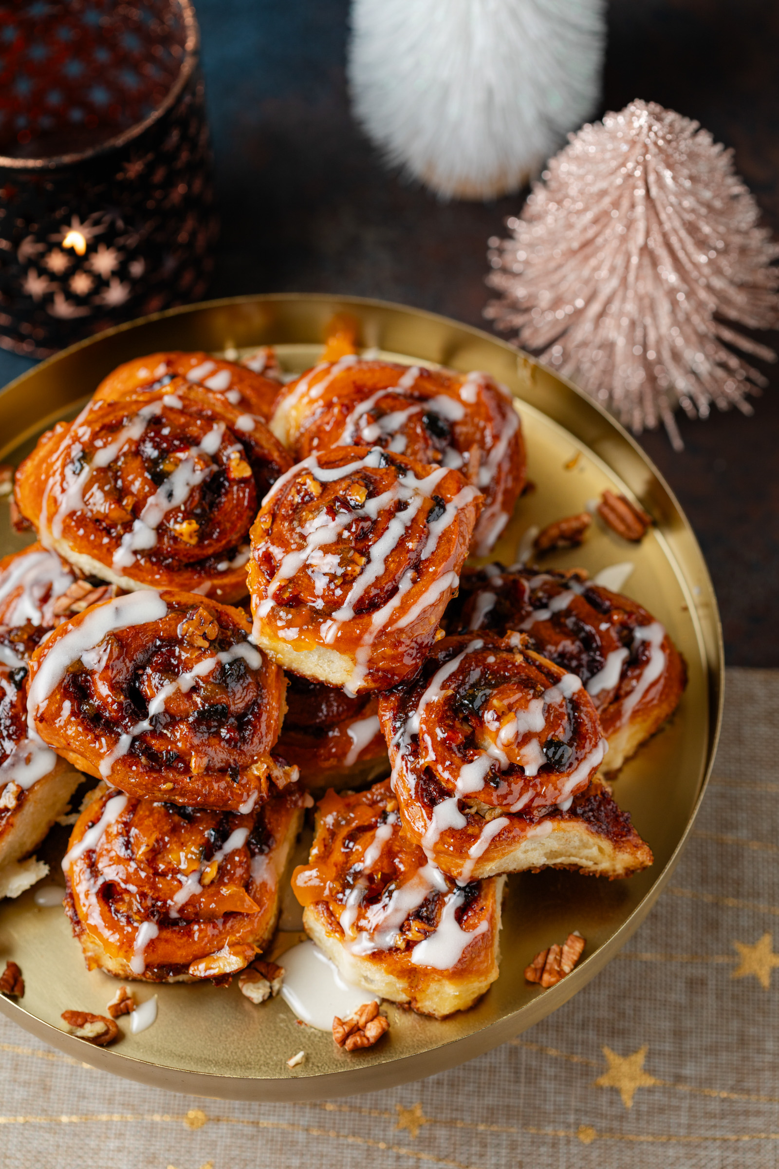 Ideaal voor een gezellig ontbijt met het gezin of een indrukwekkende toevoeging aan je feestelijke brunchtafel. En die glanzende laag abrikozenjam en swirl van frosting maken ze onweerstaanbaar. Iedereen zal smullen van deze heerlijke kaneelbroodjes en jij hoeft er niet uren voor in de keuken te staan.