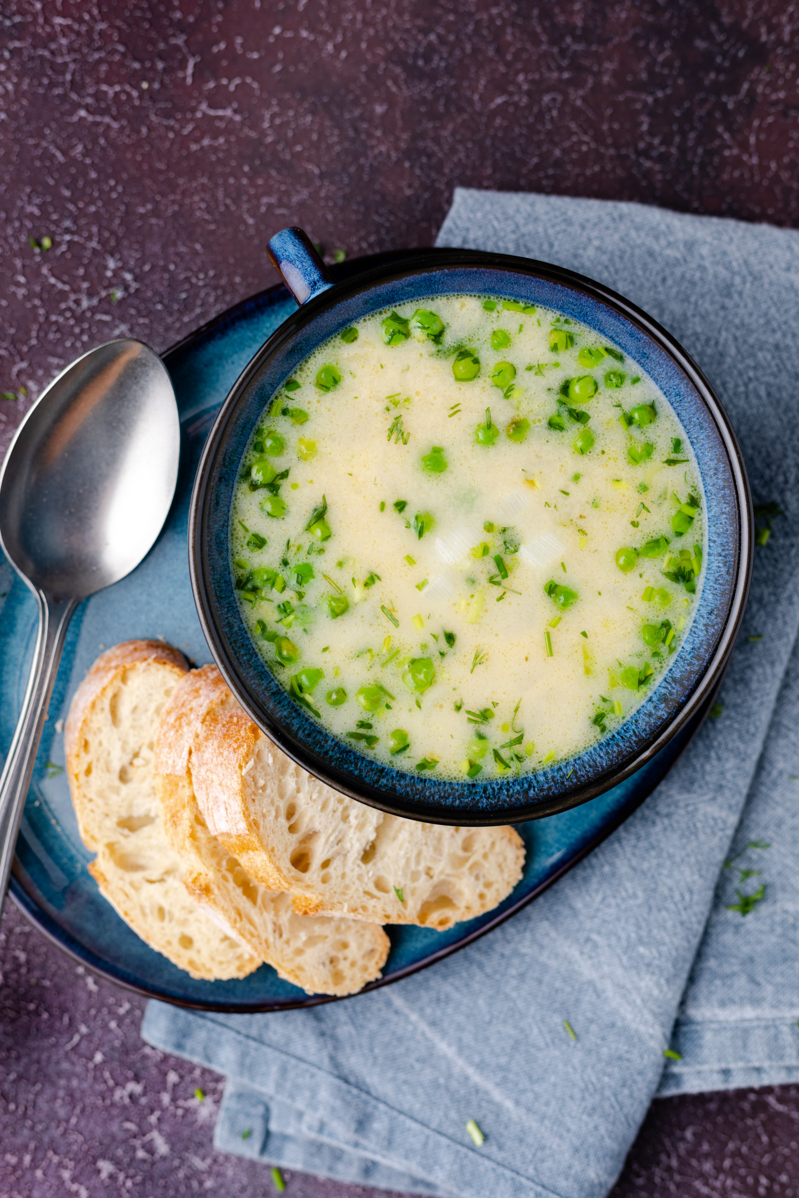 De aspergesoep met doperwten is heel makkelijk om te maken, je hebt alleen wat tijd nodig om de bouillon te maken (half uurtje), maar in die tijd kun je ook de doperwten bakken en asperges koken. Deze soep laat zich trouwens ook heel goed invriezen, dus maak gerust een dubbele portie zodat je er op een drukker moment (of buiten het aspergeseizoen) ook van kunt genieten.