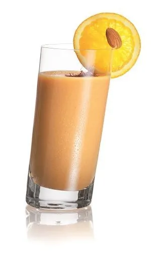 Voor 1 glas gebruik je 100gr geweekte amandelen, 4 sinaasappelen (geschild), klein stukje gember (geschild) en 2 wortelen. Voeg eventueel een snufje saffraan toe naar smaak.