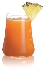 Voor 1 glas gebruik je 3 wortelen, 1/4 verse ananas (geschild) en een stukje gember (geschild).