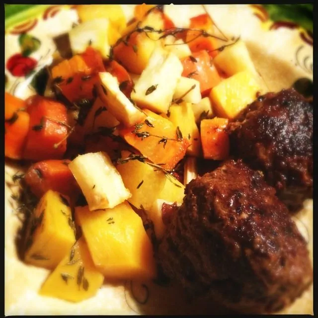 Homemade gehaktballen met ovengroenten