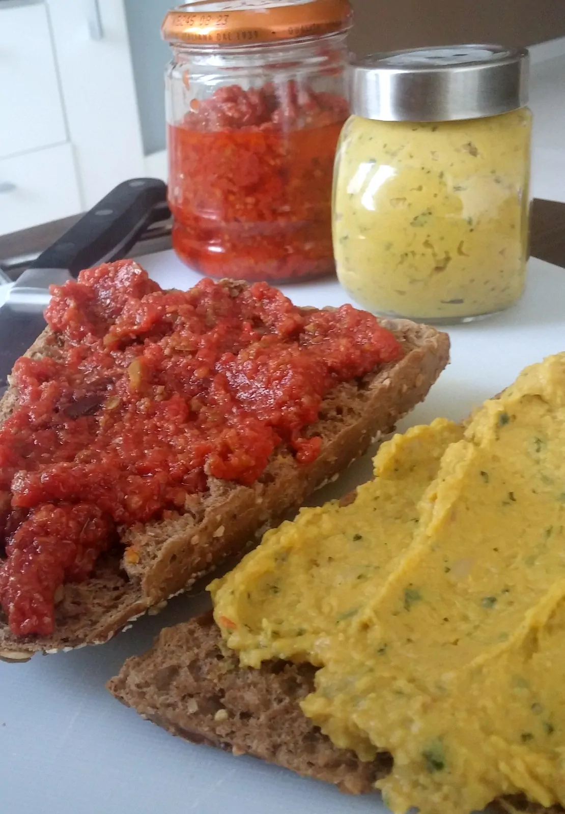 Eigenlijk is er niet veel te vertellen. Per spread doe je alle ingrediënten in de blender en klaar is kees. Bij de tomatentapenade vind ik het lekker als er ook nog wat structuur in zit, dus deze blend ik niet heel lang. Bij de korianderspread is het lekker om hem zo glad mogelijk te eten. Eet de tomatenspread op brood met avocado of noten, en de korianderspread is erg lekker met wat plakjes radijs. Geniet van dit vegan broodbeleg!