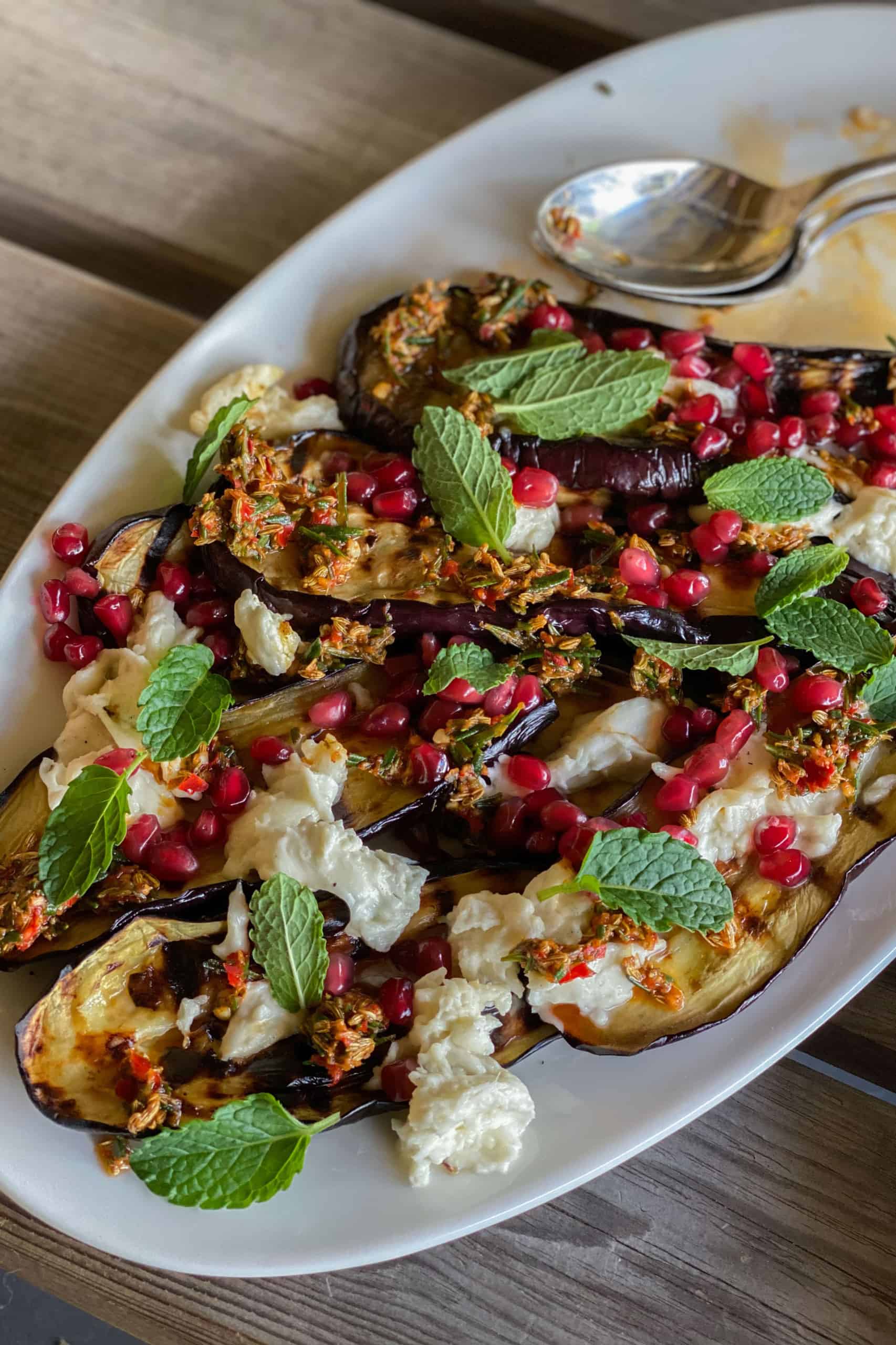 Recept aubergine met rozemarijn, granaatappel en mozzarella: Leonie (geïnspireerd op een recept uit het Big Green Egg Kookboek), Fotografie: Francesca