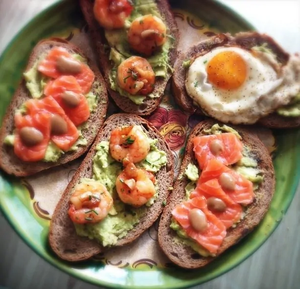 Bak de eitjes in een koekenpan met weinig boter. Smeer een laagje avocadospread op 2 broodjes. Leg hierop een gebakken eitje en breng op smaak met peper en zout.