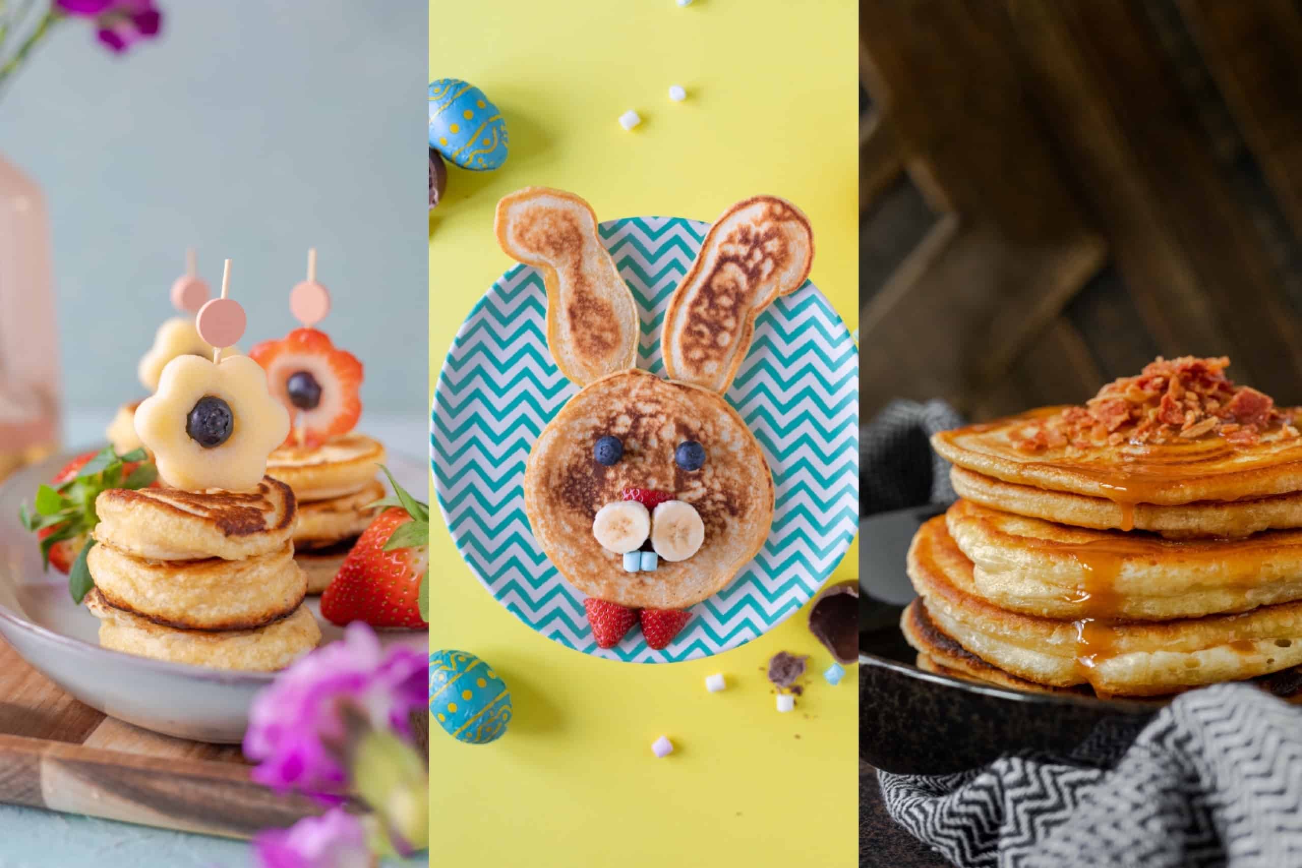 Geniet van het maken én eten van deze vrolijke pancakes voor het paasontbijt!