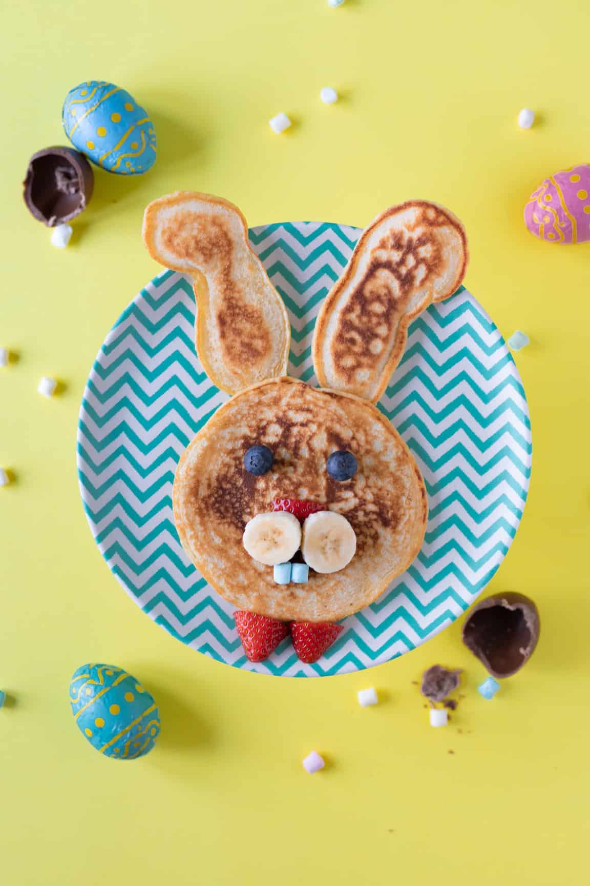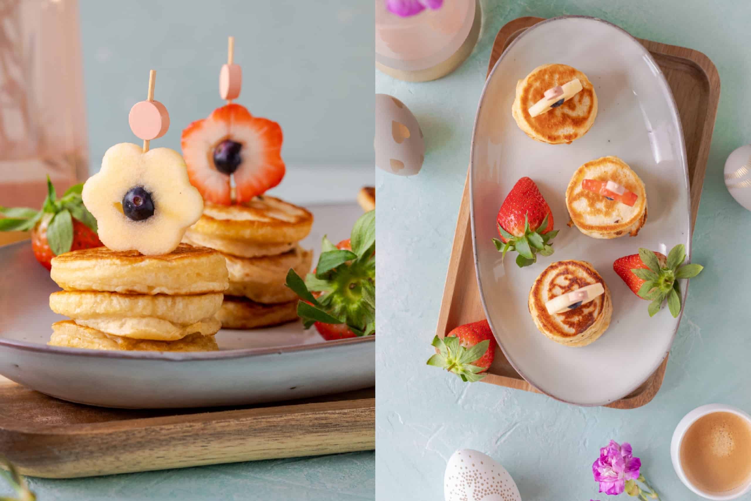 Geniet van het maken én eten van deze vrolijke pancakes voor het paasontbijt!