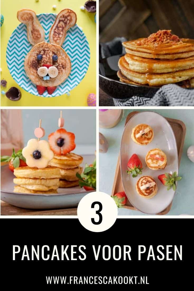 Vandaag heb ik heerlijke ontbijtinspiratie voor Pasen voor jullie met maar liefst 3 verschillende vrolijke pancakes voor het paasontbijt! Receptideeën die trouwens niet nieuw zijn, want als je Pinterest opent dan staat het er vol mee, maar ik vond het zo leuk om de pancakes met elkaar te combineren zodat iedereen binnen het gezin zijn eigen pancakes voor het paasontbijt heeft: vrolijke versierde haas pancakes, bloemetjes pancakes met vers fruit en een stapel pancakes met karamelsaus en bacon crumble. Voor ieder wat wils binnen het gezin!