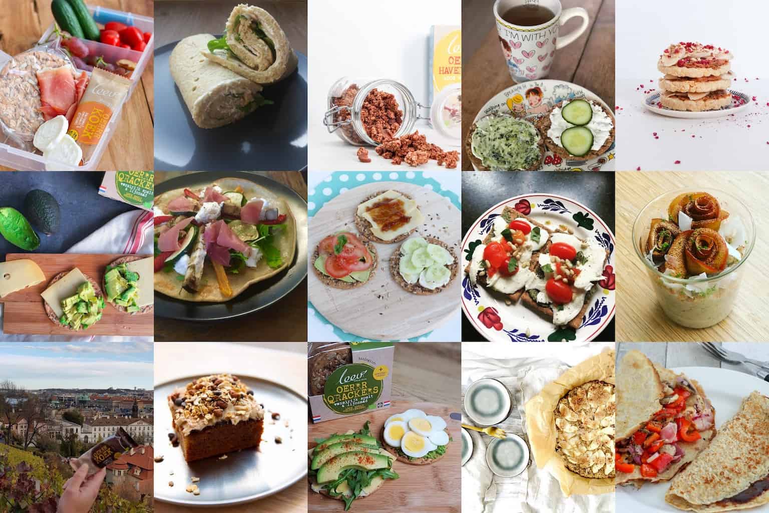 [vc_row][vc_column][vc_column_text]Samenwerking – Afgelopen jaar zijn mijn fans flink aan de slag gegaan met de heerlijke biologische producten van Leev. Ze kregen een box thuisgestuurd met de producten van Leev (meer hierover lees je in mijn vorige blog) en daarmee maakten ze recepten voor onderweg. Vandaag deel ik maar liefst 30 lekkere en bewuste recepten voor onderweg. Sla dit artikel op zodat je nooit meer verlegen zit om makkelijke recepten waarmee je ook onderweg lekker en bewust kunt eten! Oh, en ik maak onderaan deze blog ook de winnaars bekend die mooie prijzen hebben gewonnen 🙂