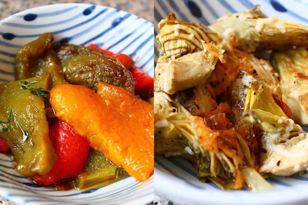 Rooster vooraf wat aubergine en courgette en marineer deze in olijfolie met kruiden. Of maak deze heerlijk geroosterde paprika. Of wat denk je van artisjokharten met olijfolie, citroenrasp en Parmezaanse kaas.