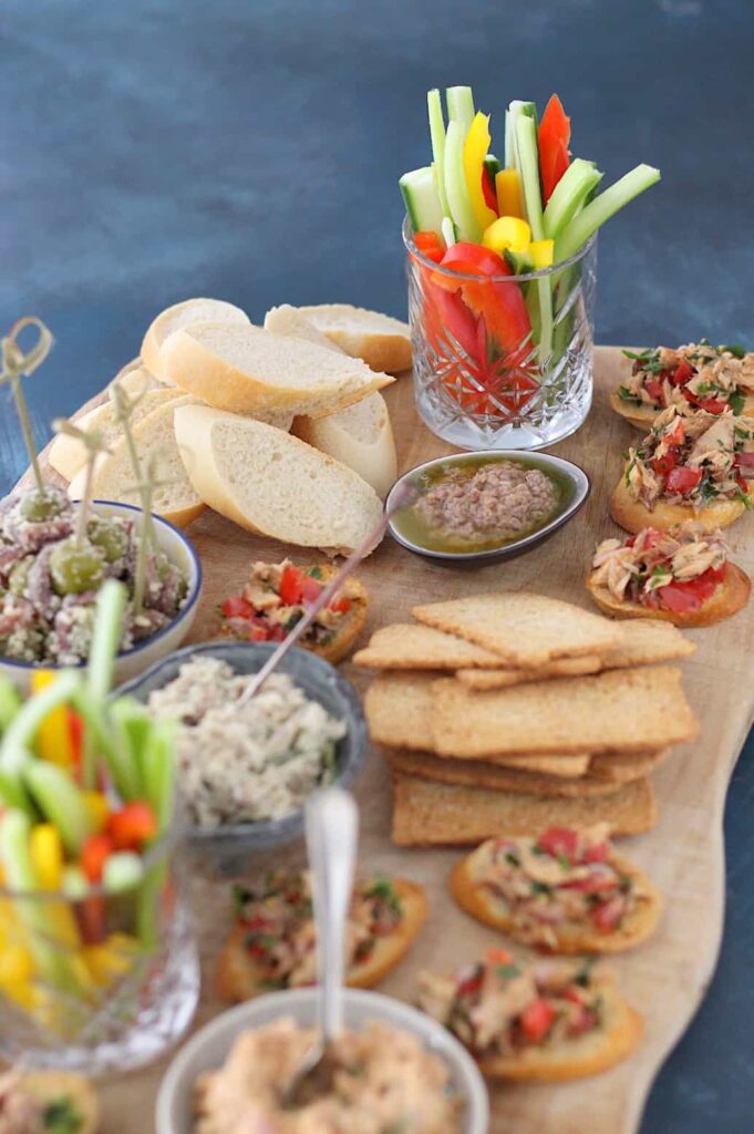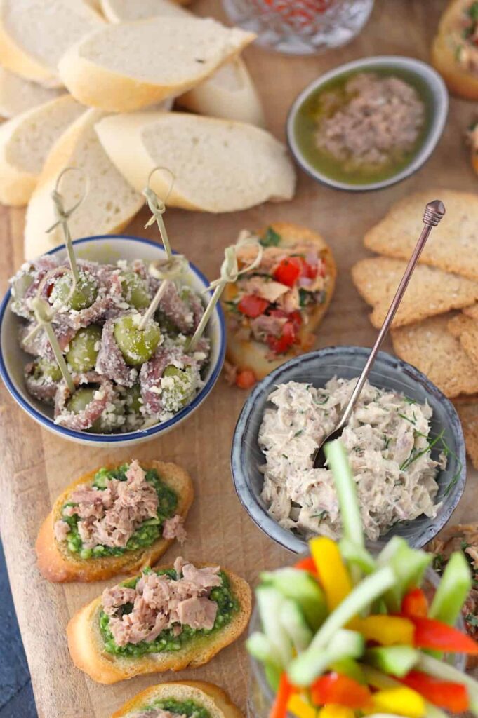 Ingewikkeld is het niet, want je werkt met duurzame vis uit blik. En daarmee maakte ik de lekkerste gerechtjes. Zoals makreelsalade met stokbrood, bruschetta’s met makreel, sjalot en tomaat, tonijnsalade met toastjes, bruschetta’s met tonijn en pesto, crudité met ansjovisdip en olijven met ansjovisdip en amandelkruim. Alle recepten vind je hier onder elkaar.