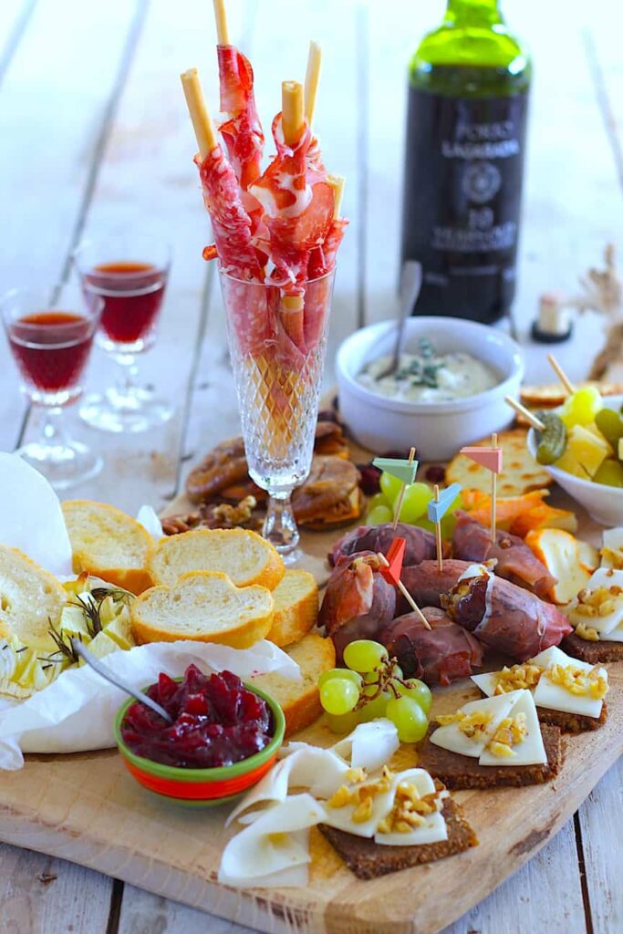Onder andere met camembert fondue, dadels met roomkaas, pecannoten en prosciutto, Hollandse oude kaas met Amsterdams tafelzuur, dip van blauwe kaas met cranberry en tijm, gedroogde vijgen met Périgord en pecannoten, geitenkaas op roggenbrood met honing en walnoten en extra smulmateriaal. Alle recepten vind je hier onder elkaar.