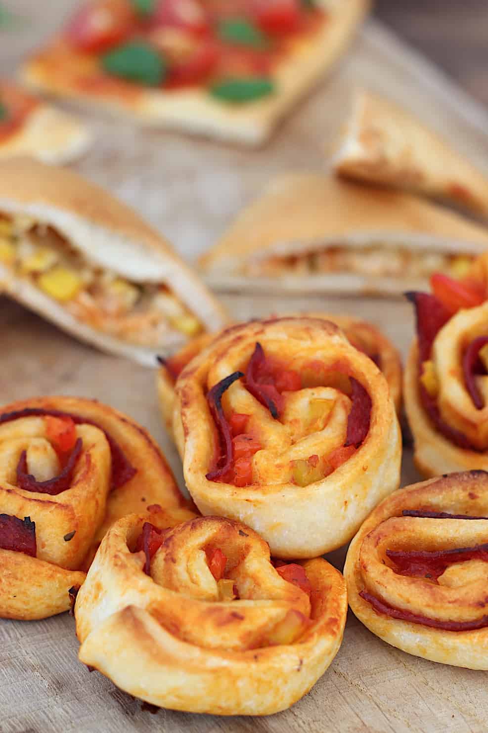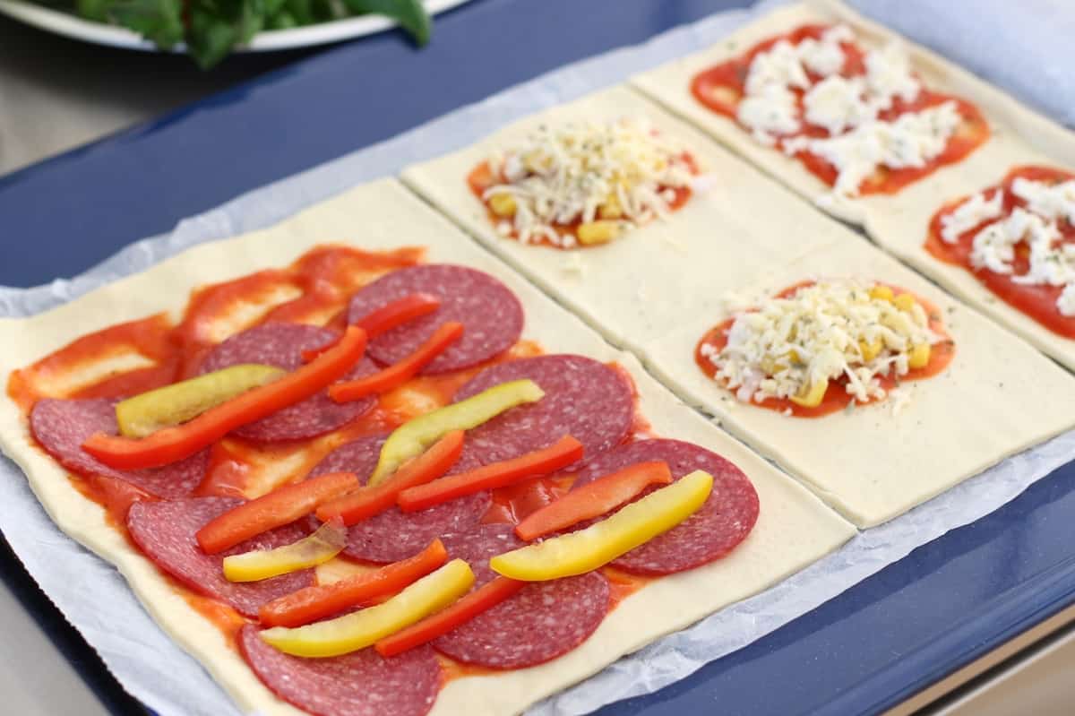 Pizzarolletjes met salami en paprika