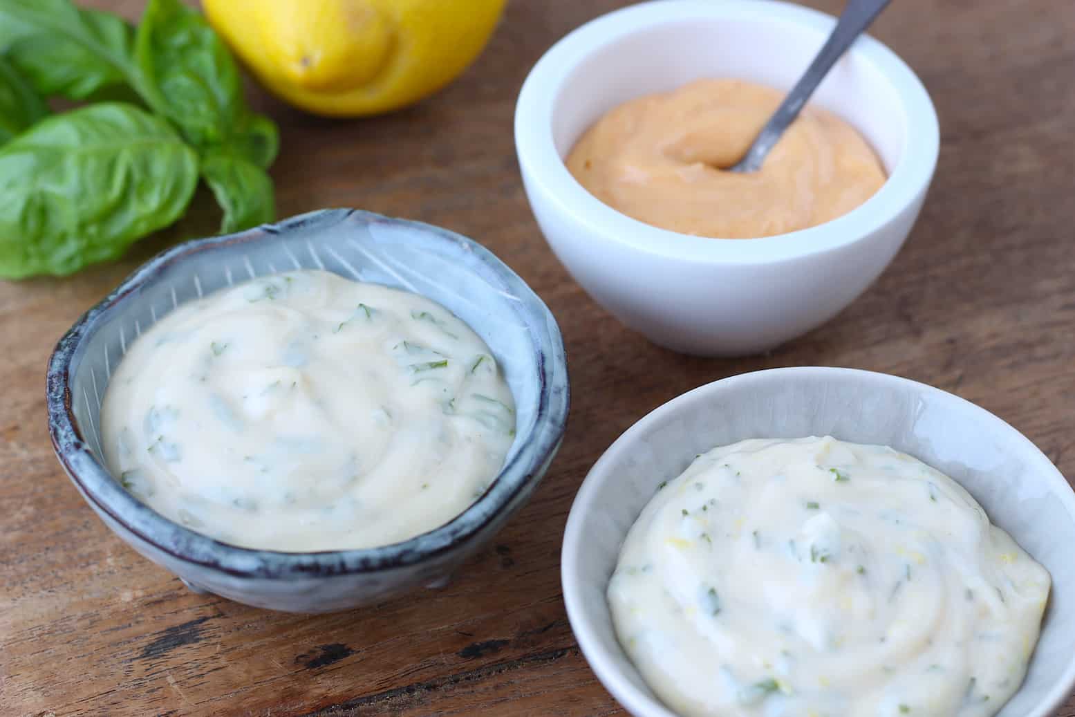 Buiten dat ik zelfgemaakte mayonaise al om te smullen vind, is het ook erg lekker (en heel eenvoudig) om er nog een smaakje aan toe te voegen. Daarom maakte ik drie smaakvariaties voor mayonaise waardoor jouw zelfgemaakte mayonaise nóg specialer wordt, maar je kunt de smaakjes natuurlijk ook aan andere mayonaise toevoegen. Het recept voor zelfgemaakte mayonaise vind je hier.