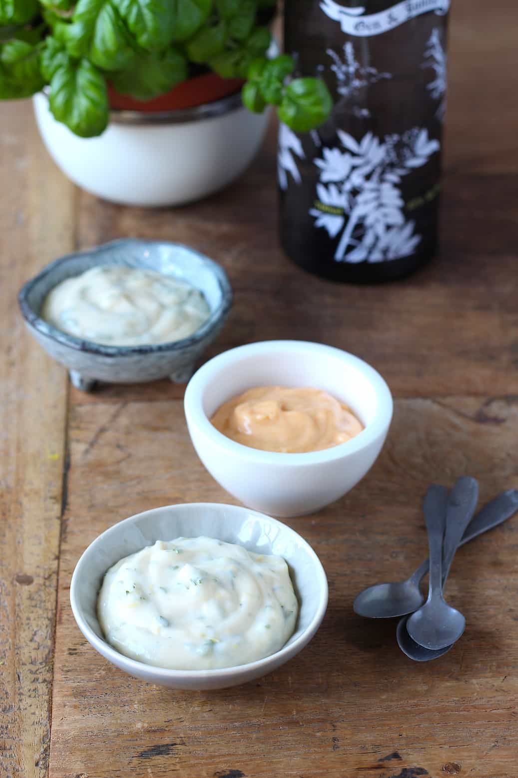 Buiten dat ik zelfgemaakte mayonaise al om te smullen vind, is het ook erg lekker (en heel eenvoudig) om er nog een smaakje aan toe te voegen. Daarom maakte ik drie smaakvariaties voor mayonaise waardoor jouw zelfgemaakte mayonaise nóg specialer wordt, maar je kunt de smaakjes natuurlijk ook aan andere mayonaise toevoegen. Het recept voor zelfgemaakte mayonaise vind je hier.