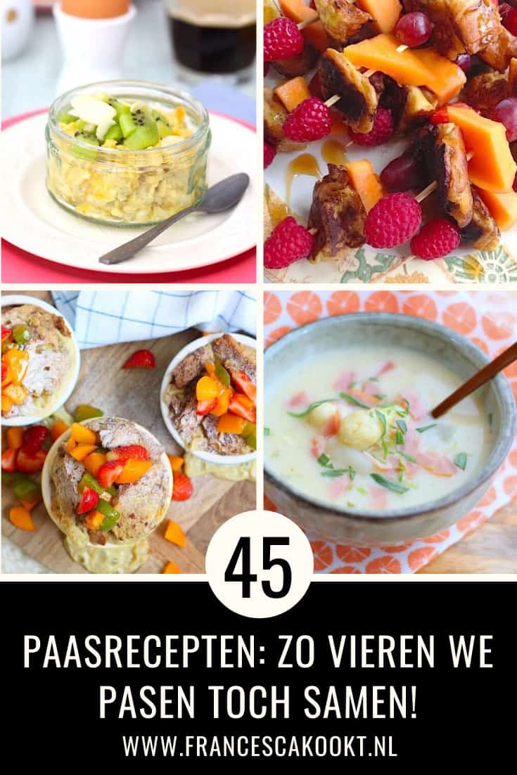 Ik vroeg op Instagram met wat voor paasrecepten ik jullie kon verblijden en de antwoorden waren duidelijk. Veelal makkelijke recepten, met af en toe de wens om toch uitgebreid te kunnen koken (want die tijd hebben we nu). Maar ook een hele duidelijke wens om met recepten te komen voor als je dit jaar alleen of met z’n tweeën Pasen viert. Dus ik ben in mijn recepten gedoken en heb voor jullie een fantastisch (al zeg ik het zelf) overzicht gemaakt van 45 paasrecepten voor als je alleen, met z’n tweeën of met het gezin Pasen viert. Pik de recepten eruit waar je blij van wordt en maak er een mooie Pasen van. Dat gaan wij thuis ook doen.