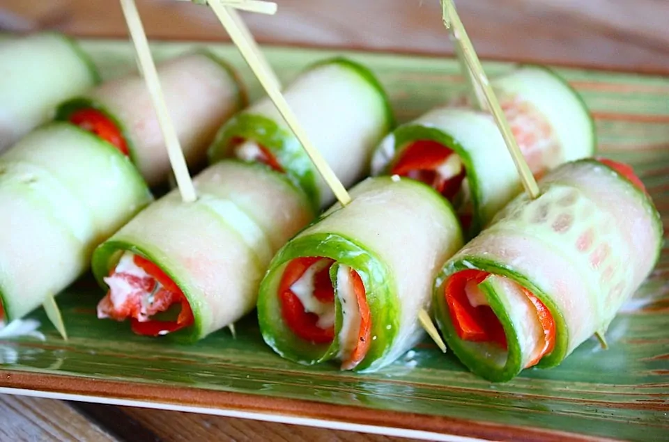 Komkommerrolletjes met zalm, dille en mierikswortel