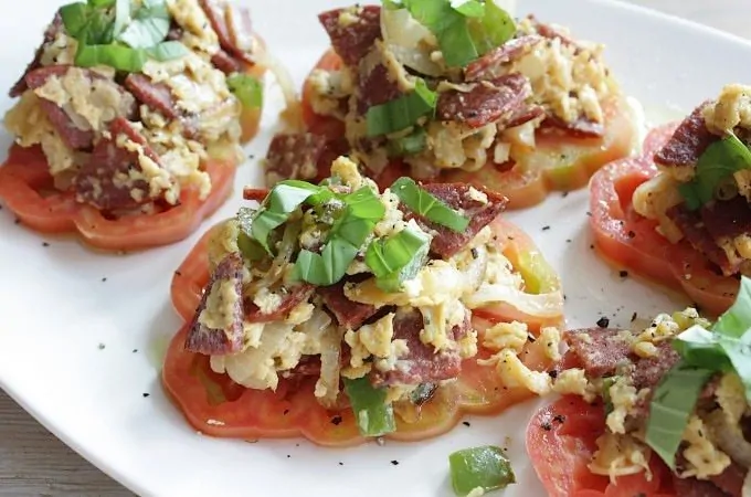 En wat denk je van deze taartjes van tomaat, ei en worst. Halveer de ingrediënten zodat je 4 taartjes maakt.