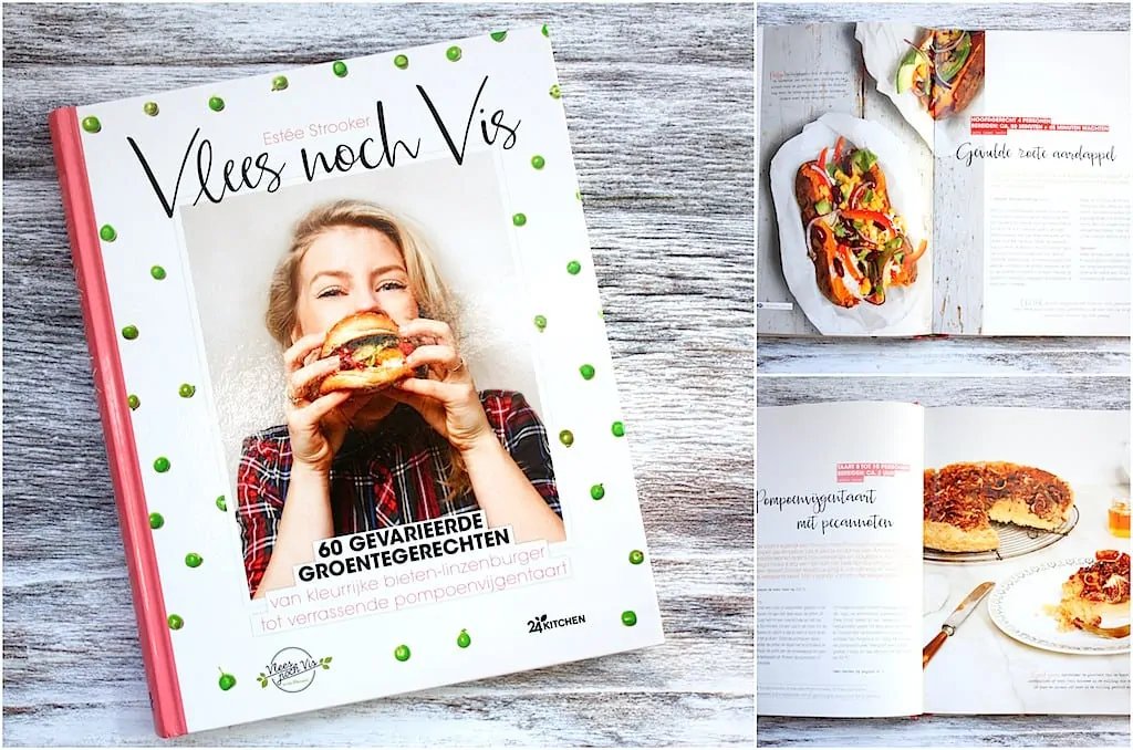 Vlees noch vis van Estée Strooker, misschien ken je haar wel van 24Kitchen, is een zeer bruikbaar boek met heel veel lekkere recepten. Mij lijkt de pompoenvijgentaart met pecannoten heel fijn en oergroentefrietjes met paprikmayonaise klinkt ook niet verkeerd. De opmaak van het boek is trouwens ook heel plezierig. Kortom een must have! Je kunt Vlees noch vis vinden bij de meeste boekhandels en op bol.com voor €19,99.