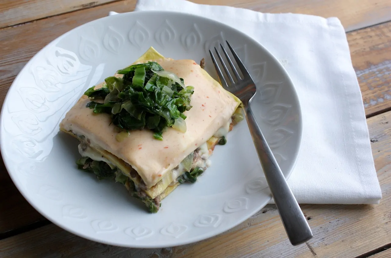 Andijvie is nu volop verkrijgbaar. Durf je het aan om hiermee deze lasagne met andijvie en gehakt te maken? Ik beloof dat je er geen spijt van zult krijgen.