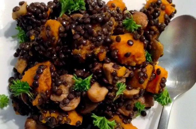 2. Salade met pompoen, champignons en linzen