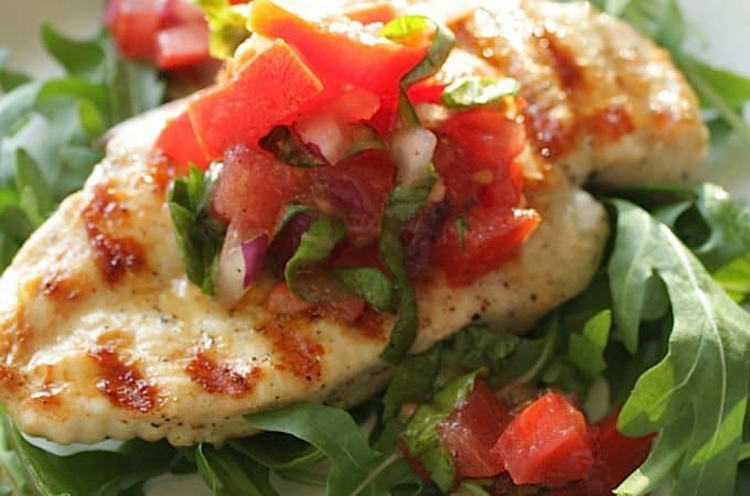 Kip, tomaat en basilicum. Daar maak je dit hele lekkere recept mee! Met rucola voor de volwassenen en wortelfriet voor de kids.