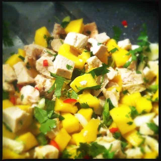2. Salade met kip, mango, rode peper en koriander