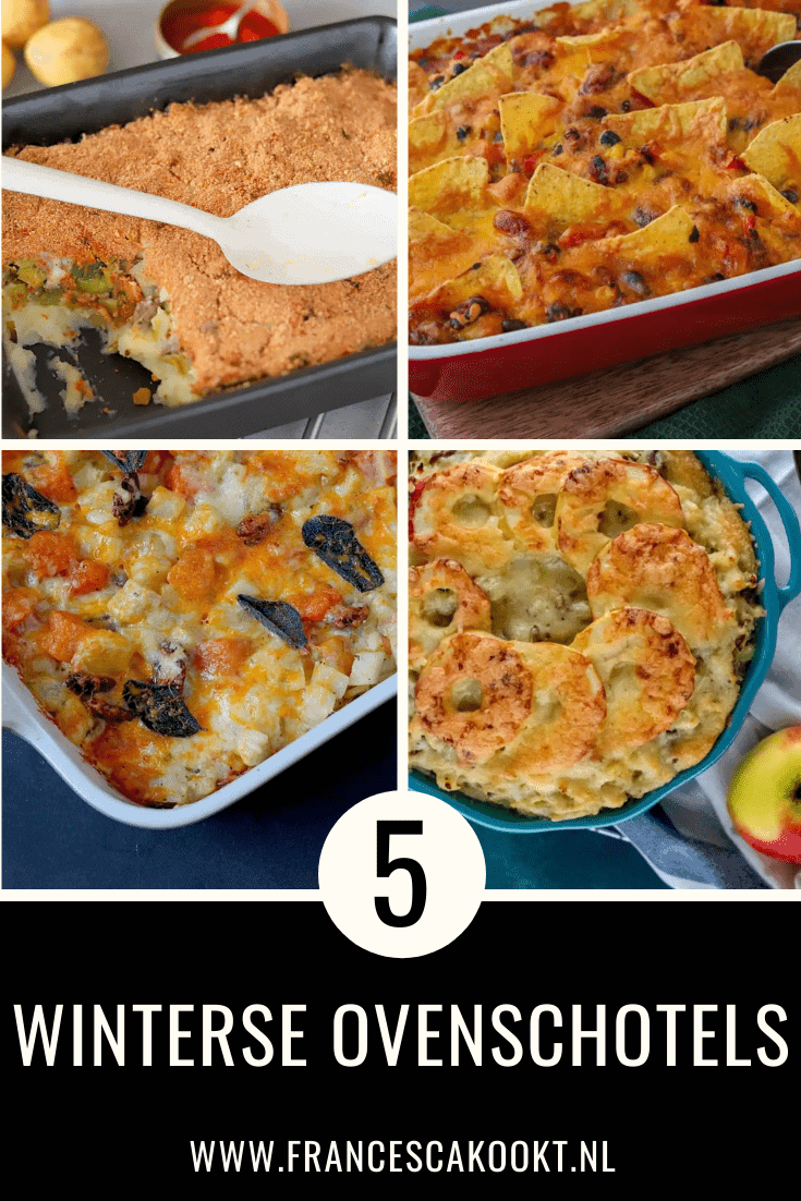Dus de gezonde ovenschotels toverde ik vanmiddag om tot winterse ovenschotels waar je blij van wordt. Oftewel: comfort food uit de oven! Met verwarmende winterse ingrediënten, rijke smaken en heel veel kaas (geen zorgen, ook eentje zonder kaas). En je kunt ook nog kiezen uit vis, vlees, kip en vega. Last but not least: de kinderen (in ieder geval de mijne wel) zijn dol op deze ovenschotels! Zo is iedereen weer blij. Geniet ervan.