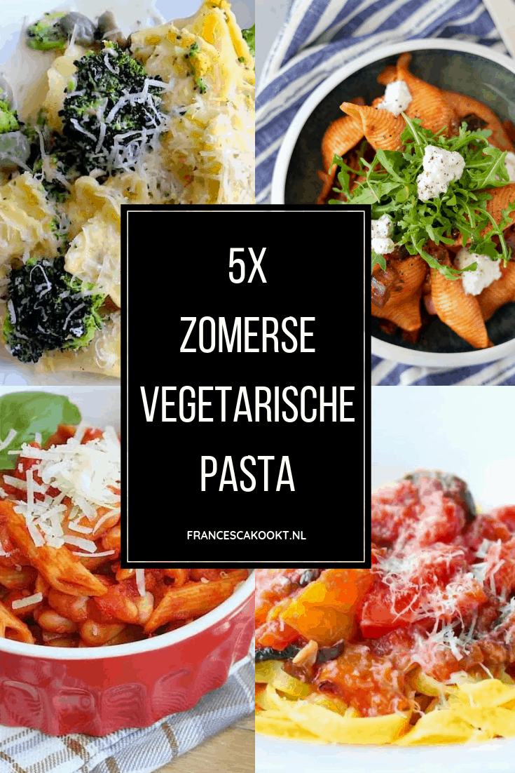 Mij maak je enorm blij met een zomerse vegetarische pasta als het buiten mooi weer is. Naast dat het (vaak) makkelijk is om te maken, is het een ideaal gerecht voor een dag geen vis of vlees en worden de kinderen er ook blij van. En met de kliekjes kun je de volgende dag heel goed lunchen. Allemaal voordelen dus en daarom heb ik mijn 5 favoriete zomerse vegetarische pasta recepten van de blog voor jullie verzameld.