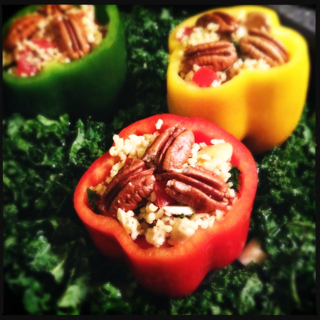 – gevulde paprika’s met kerrie bulgur en geroosterde boerenkool