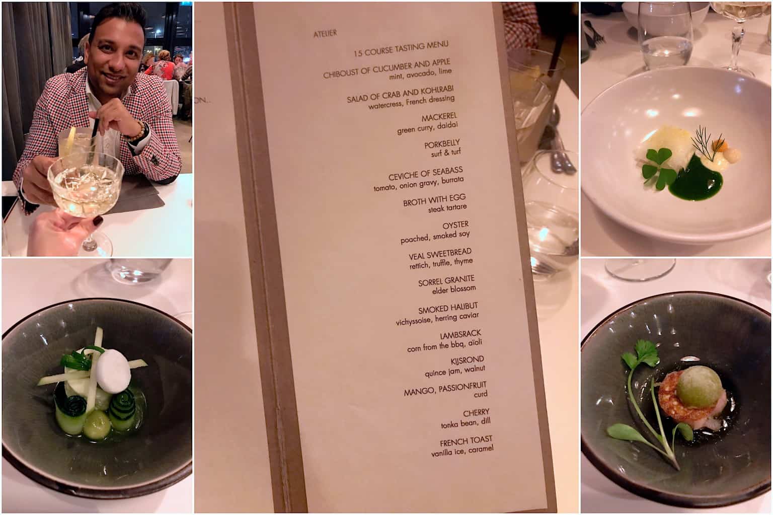 Dan het eten, daar komen we natuurlijk voor! Het restaurant heet niet voor niets atelier, hier worden namelijk iedere dag nieuwe gerechten gecreëerd. Hun signatuurmenu bestaat dan ook 15 gerechten. Qua hoeveelheid perfect in balans en ieder gerecht is weer een feest om naar te kijken én om te proeven. Ik ben onder de inruk van de prijs die hiervoor wordt gevraagd: € 75,- voor 15 gangen is namelijk echt heel netjes. Zeker als je het beoordeelt op basis van wat je krijgt. Misschien moet je er even voor sparen, maar het is iedere euro waard.