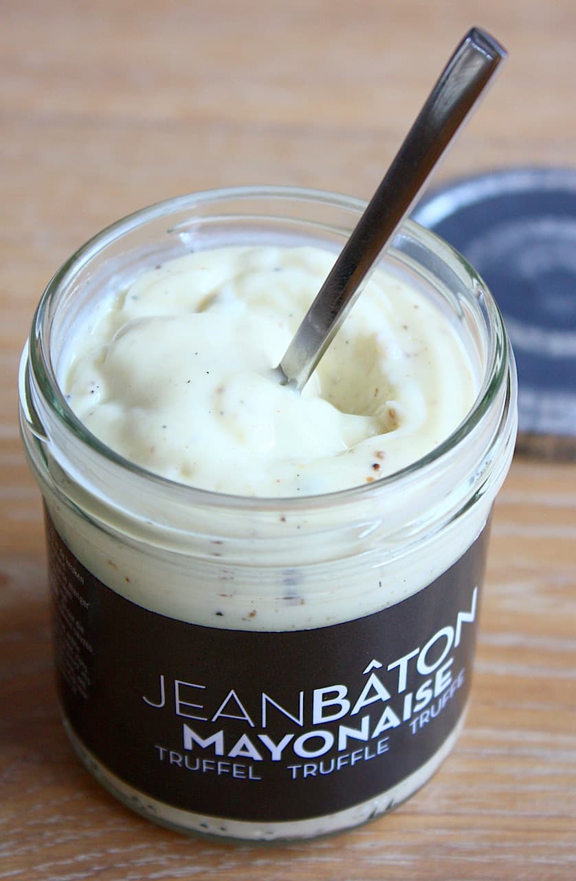 Mayonaise maak je van eidooiers en olie en dat kun je heel makkelijk zelf doen. Maar daar heb ik heel vaak geen zin in en ik koop net zo lief goede mayonaise. Een van mijn favoriete merken is Jean Bâton. Die maken de mayonaise precies zoals het hoort. Van minimaal 75% olie en 7,5% eidooier om precies te zijn. Daar voegen ze allemaal heerlijke ingrediënten aan toe voor de verschillende smaken. Maar kunstmatige geur-, kleur- en smaakstoffen gaan er niet in. Vooral de truffelmayonaise gaat er bij ons gretig doorheen en daarom vandaag dit recept voor een bijgerecht van aardappeltjes uit de oven met truffelmayonaise.