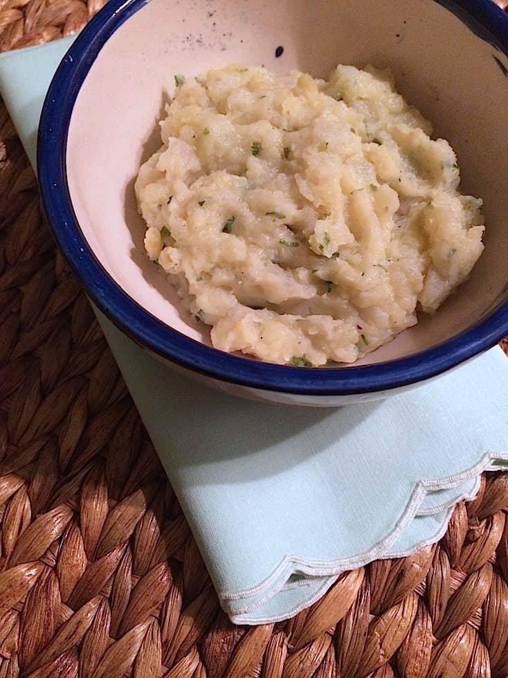 Aardperen hoef je niet te schillen voordat je gaat koken, omdat ze een heel dun schilletje hebben. Borstel ze goed schoon onder stromend water en snijd ze daarna in grove stukken. Schil de aardappelen en snijd deze ook in stukken, net zo groot als de aardperen. Kook de aardperen en aardappelen samen met de knoflook en wat zout in 25 minuten gaar en giet dan af.