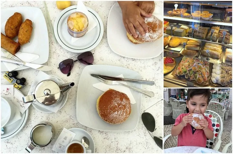 Ontbijten deden we bijvoorbeeld bij Pasteleria Riviera, wat een heerlijkheden hebben ze daar! Ontspannen zitten met een tafel vol en een ‘bica’. Ook namen we daar lekkers mee voor de volgende dag als ontbijt.