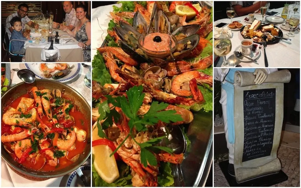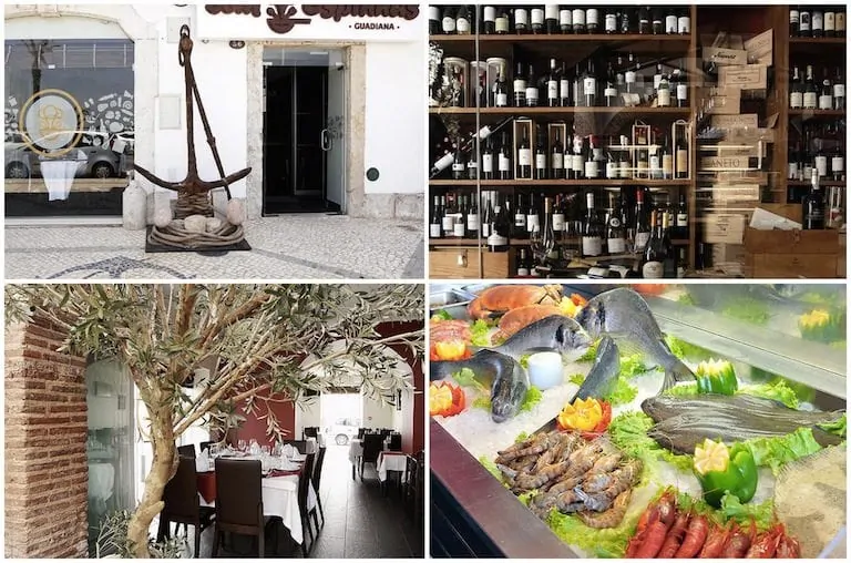 Vlakbij, in dezelfde straat, vind je de Portugese Harbour Club: Restaurante da Associacao Naval do Guadiana. Hier eet je fantastisch vis. Wij bestelden een Cataplana di Corvina. Een cataplana is een traditionele visstoofpot uit de Algarve met verschillende soorten vis. Corvina is een lokale diepzeevis. Die van ons was een kleintje van 7 kilo. Ze kunnen maar liefst 65 kilo worden! Tevens aten we een schaal met garnalen, krab en kreeft. Onze vingers aten we er ook maar bij op.