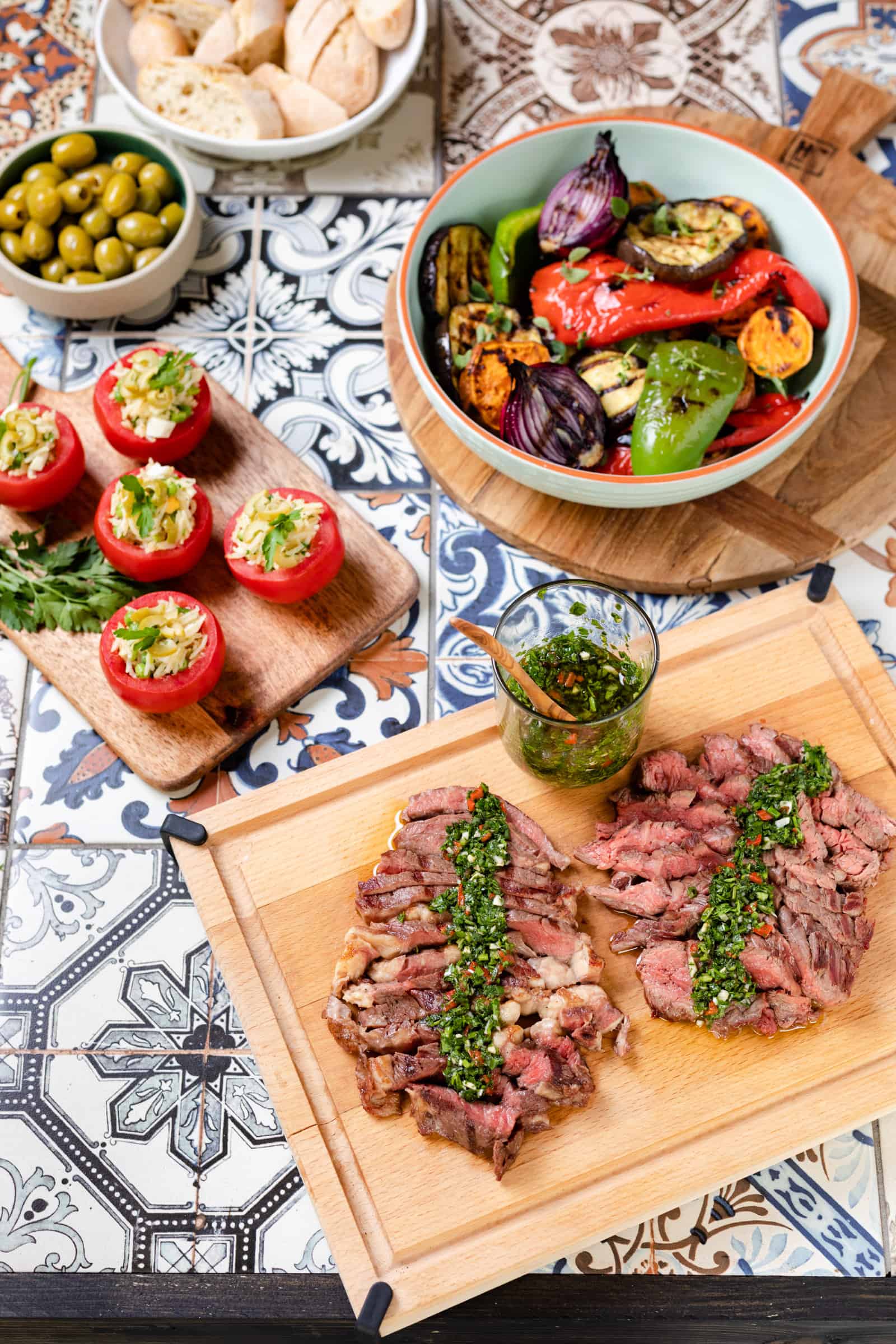 Deze zomer reizen we de hele wereld rond op onze barbecue! En vandaag maak ik een Argentijnse barbecue met een goed stukje gegrild vlees van de barbecue met (uiteraard) chimichurri. Daarbij serveer ik gegrilde groenten en zalige gevulde tomaten, wat een authentiek gerecht uit Argentinië is. Lees snel verder, want hieronder deel ik alle recepten van deze Argentijnse barbecue.