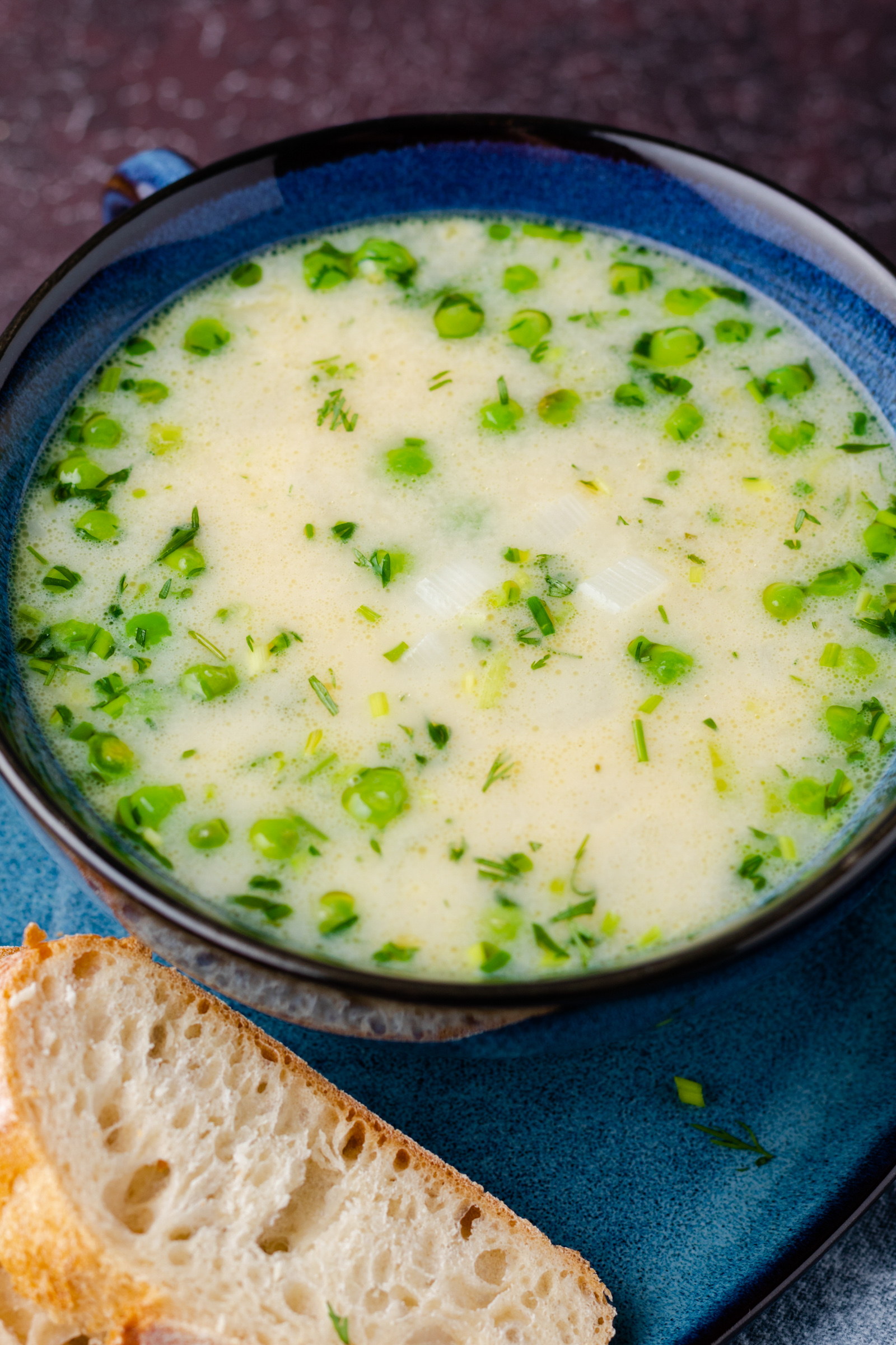 Aspergesoep blijft een feest om te eten in dit seizoen. Op mijn blog vind je al een klassiek recept voor romige aspergesoep, maar ik wilde ook een keer een lichte, vegetarische variant maken. Dat is deze licht gebonden aspergesoep met doperwten, dille en bieslook geworden, allemaal ingrediënten die heel goed samengaan met de witte asperges.