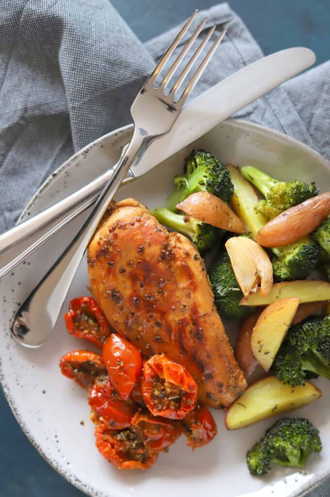 Er zijn van die gerechten die ik iedere week wel zou willen eten. Deze balsamico kip met aardappeltjes en broccoli is er een van. Ik plaats ‘m ook heel bewust op vrijdag, want voor mij is dit echt comfort food, ook al is het best een voedzame maaltijd met weinig toeters en bellen…maar de smaak jongens! De kip wordt extreem mals en is vol van smaak. In combinatie met de geroosterde aardappeltjes en broccoli uit de oven heb je echt een feestmaal. Kies voor de lekkerste ingrediënten en dan wordt de smaak zelfs nog beter. Geniet ervan!