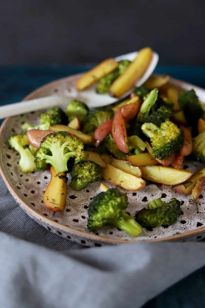 - Serveer de balsamico kip met de geroosterde aardappeltjes en broccoli op 4 mooie borden en geniet!