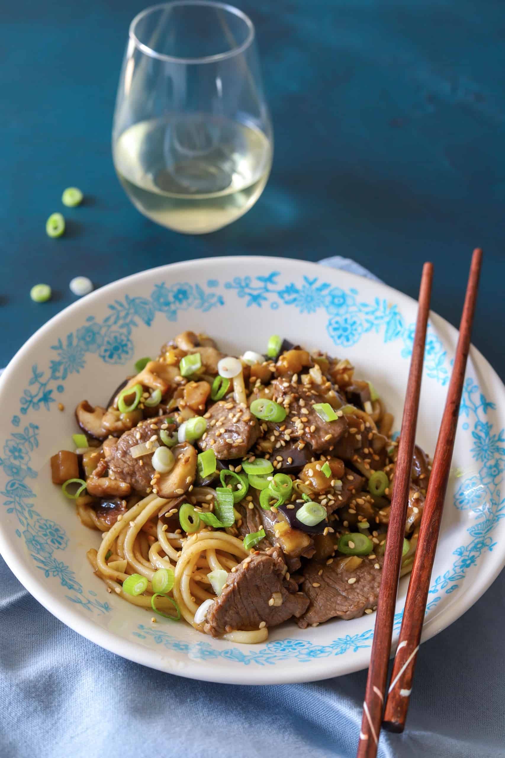 Afgelopen week konden jullie mijn tips voor het wokken lezen en vandaag maak ik de tips compleet met een heerlijk wokrecept! Deze biefstuk uit de wok met shiitake, aubergine en noedels is een van mijn favorieten om thuis te maken. Snel bereid, goed op smaak en met een goede balans tussen vlees en groenten. Geniet ervan!
