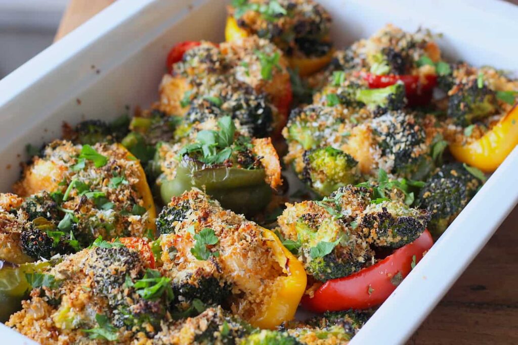 Gevulde paprika’s met broccoli, couscous & garnalen