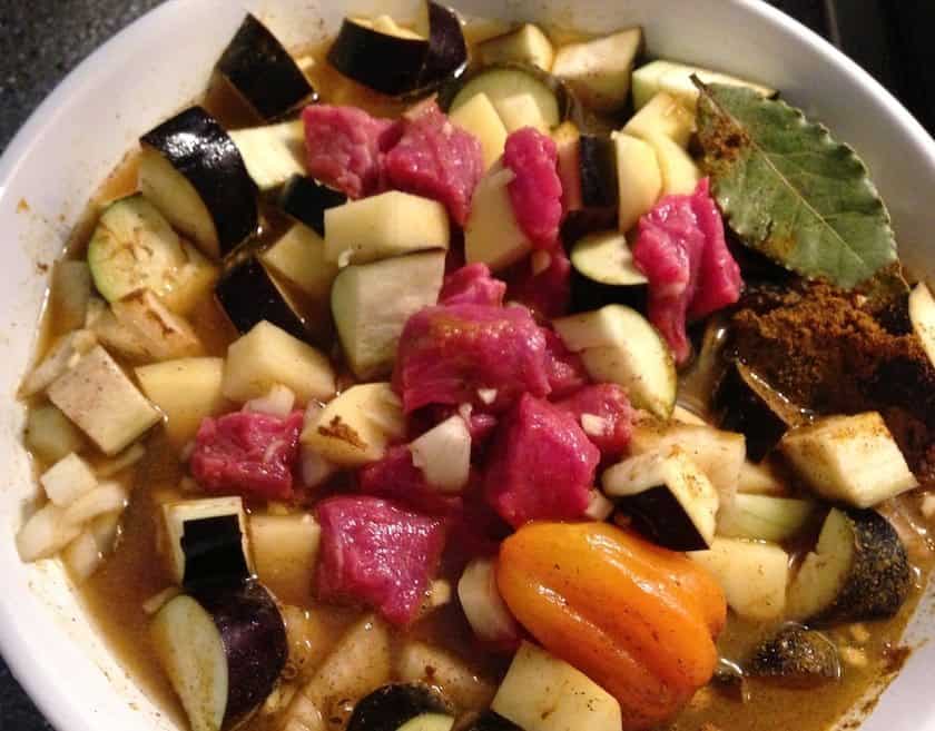 De tweede keer heb ik er een Surinaamse stoofschotel in gemaakt. Met rundvlees, aubergine, peper en masala. Een van mijn favoriete gerechten en ik was benieuwd hoe dit uit de slowcooker zou komen. Deze was wel lekker, maar nog niet perfect. Dat had niets met de slowcooker te maken, maar met het feit dat als masala niet eerst is aangebakken deze specerij een licht bittere smaak krijgt. En dat proef je terug. Dus dit experiment wordt nog een keer herhaald, maar dan met een andere bereidingswijze.