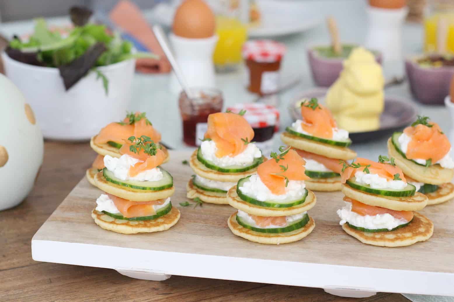 Ik heb het al vaker verteld, maar sinds dat onze baby een dreumes is geworden, en ook direct kon lopen, kom ik handen te kort. Meneertje gaat de héle dag op onderzoek uit wat heel gezellig en schattig is, maar soms ook enorm onhandig. Vooral omdat onze keuken helemaal open is en hij niets leuker vindt dan alle kasten leeghalen terwijl ik aan het koken ben. Kortom, ik bedenk steeds vaker snelle en lekkere recepten en vandaag deel ik met jullie dit snelle recept voor blini torentjes met gerookte zalm die je in 10 minuten maakt.