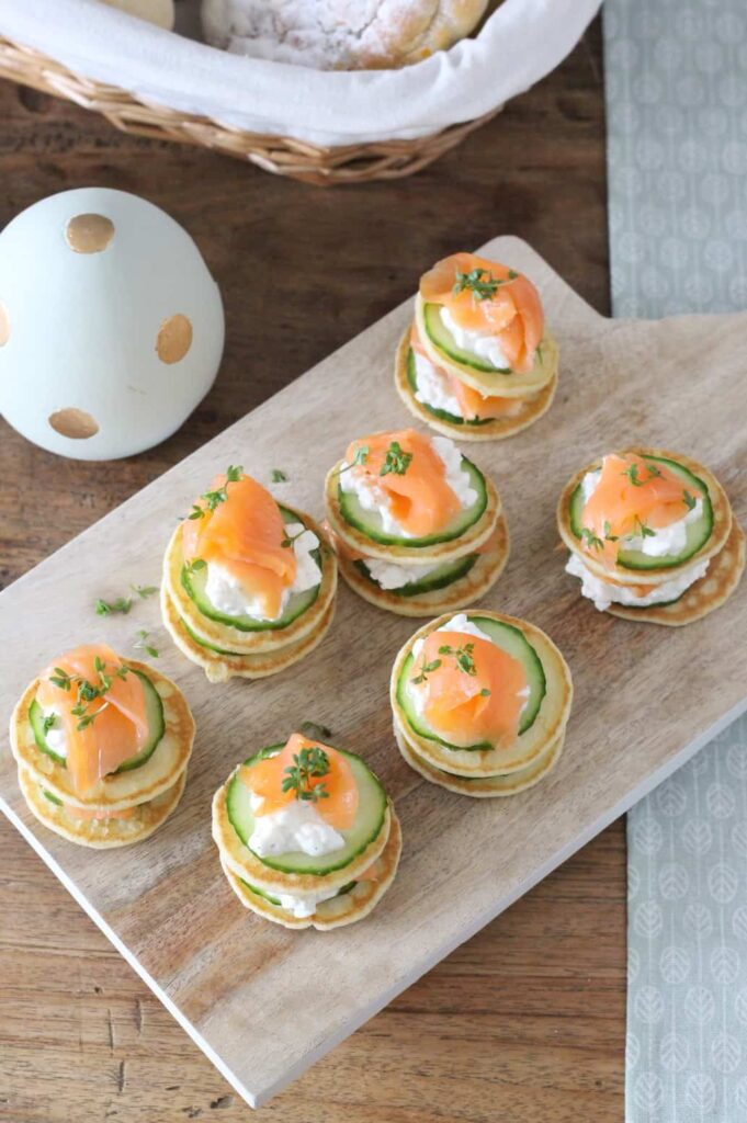 Deze blini torentjes zijn een leuk en snel gerechtje om te maken voor een brunch of als voorgerecht. Ik heb nu kant-en-klare blini’s gebruikt (vandaar de 10 minuten), maar als je de blini’s zelf wilt bakken vind je hier het recept.