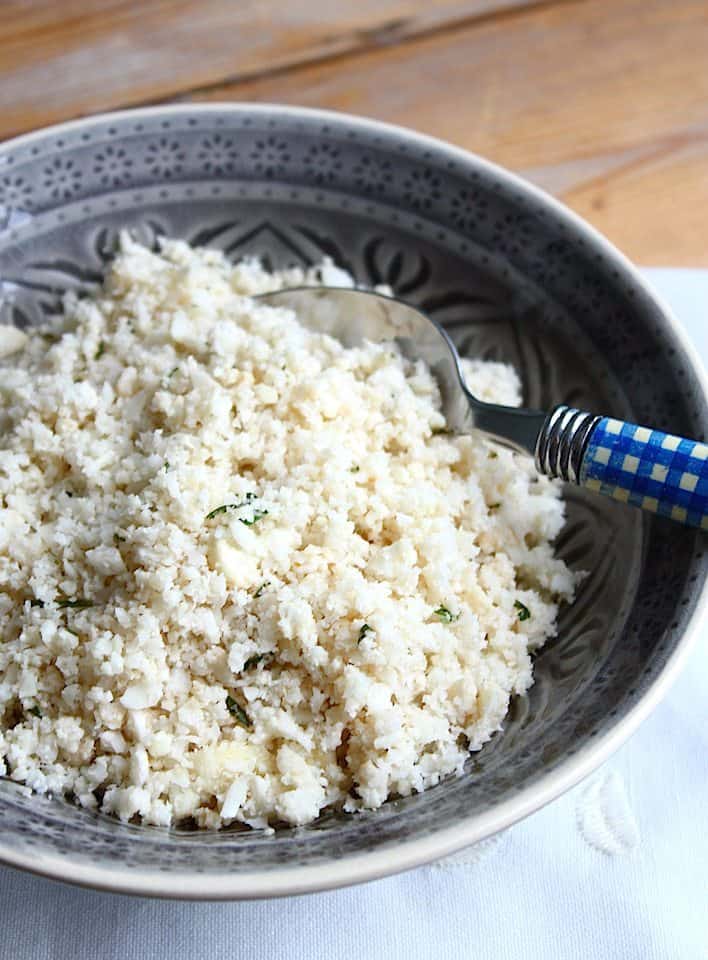 Tip: maak er eens een Italiaanse variant van. Hiervoor bak je de bloemkoolrijst in olijfolie en op het laatst schep je er stukjes tomaat en gehakte basilicum door. Of meng met zelfgemaakte pesto.
