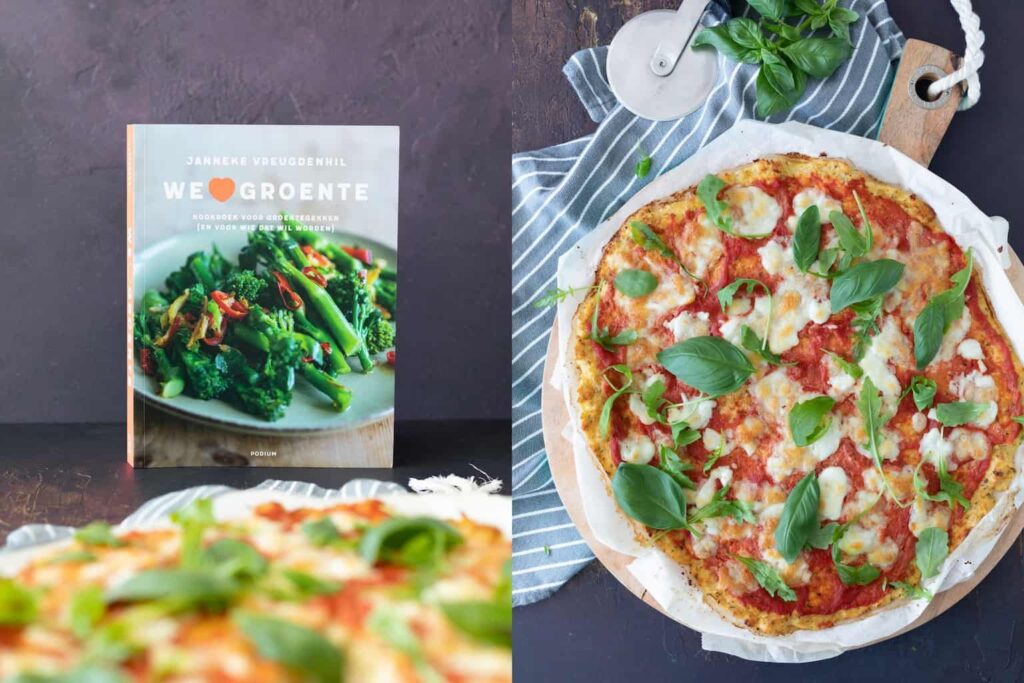 Dat het bij mij in de keuken ook niet altijd vlekkeloos verloopt, bewijst het bereidingsverhaal van dit gerecht uit We love groente. Ik wilde graag een recept koken uit dit nieuwe vegetarische kookboek van Janneke Vreugdenhil en mijn keuze viel op de bloemkoolpizza margherita. Een gerecht wat ik jaren geleden nooit gemaakt zou hebben, omdat ik het ‘onzin’ vond om van bloemkool een pizzabodem te maken. Dat deed je gewoon met bloem, e basta.