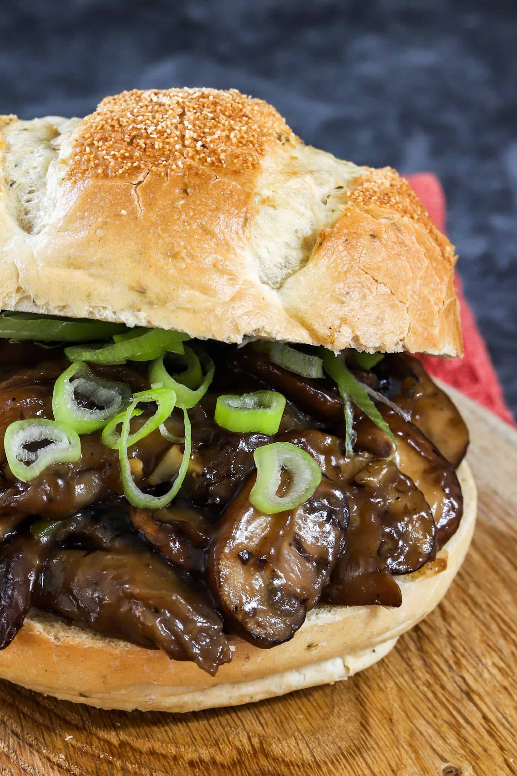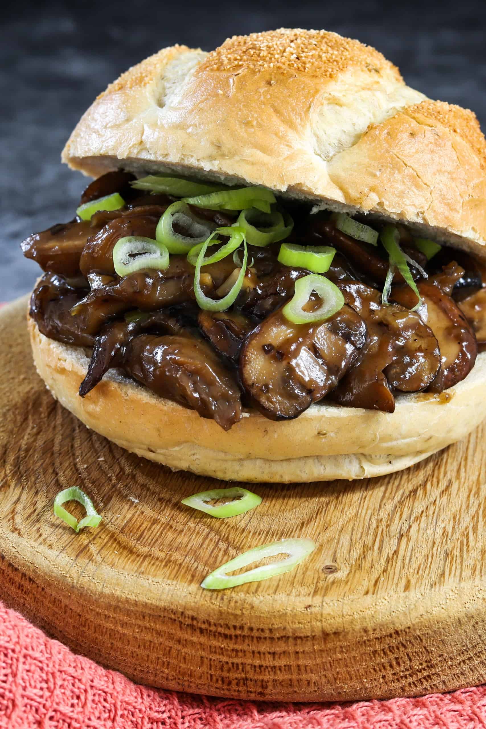 - Serveer de Oosterse paddenstoelen op de broodjes en garneer royaal met de groene ringetjes lente-ui.