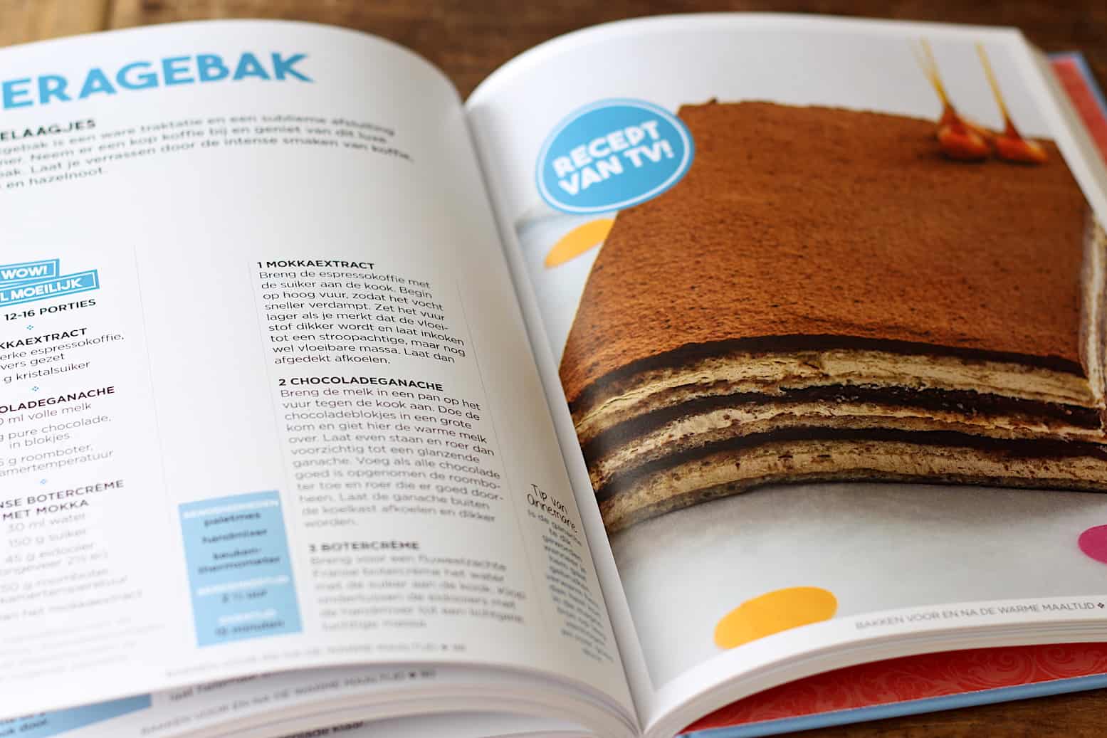 Tijdens het bladeren door het boek werd ik blij. Uiteraard staan er een aantal pronkstukken in uit het programma zoals de kleurrijke spekkoek (wat een plaatje, maar ik zal er nooit aan beginnen) en het operagebak.