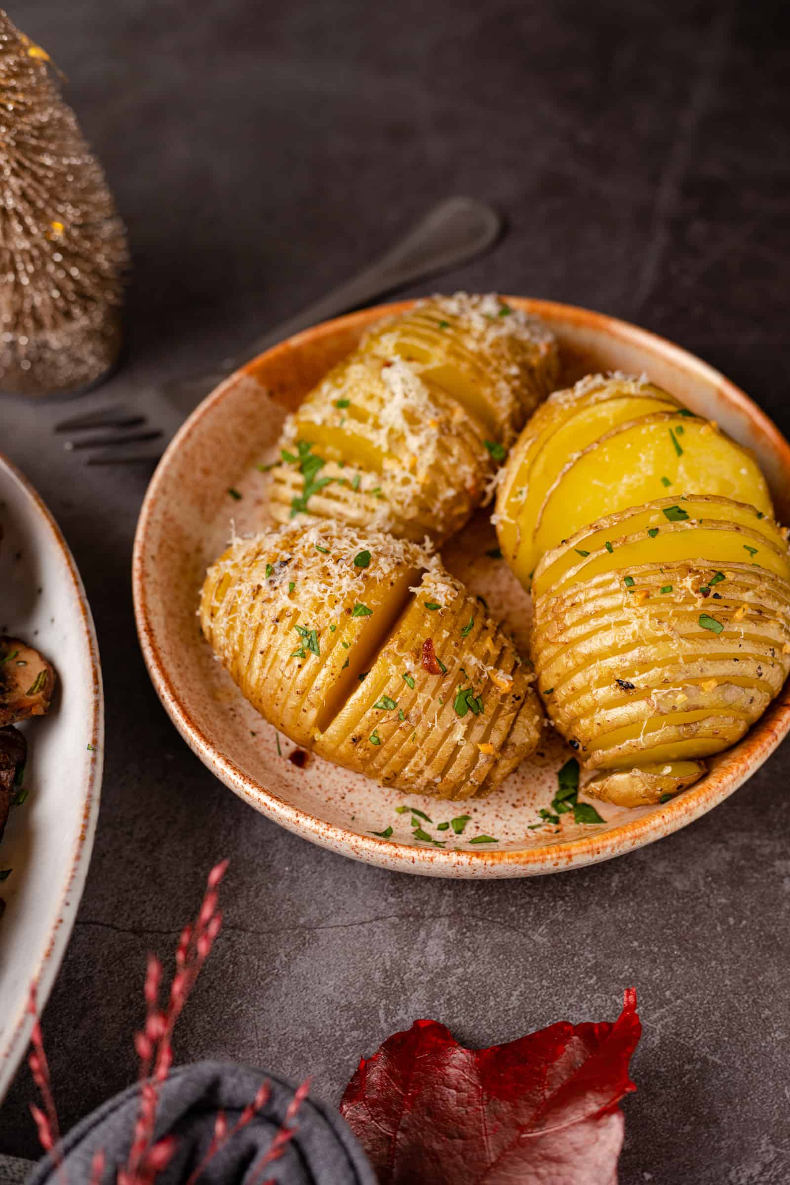 Hasselback aardappels met truffel, knoflook en Parmezaanse kaas