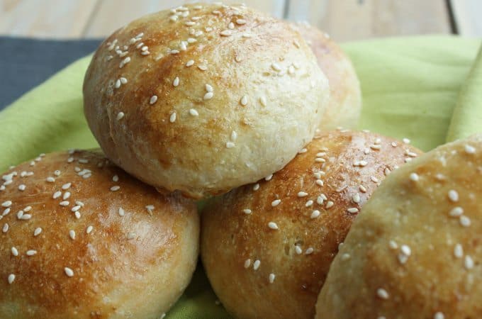 Ik ben een enorme hamburgerfan, maar ik ben geen fan van de hamburgerbroodjes die je kant en klaar in de winkel kunt kopen. Soms cheat ik met afbakbroodjes of ik koop grote bollen bij de bakker. Maar die smaken toch nooit zoals je wilt dat ze smaken. Alweer een tijd